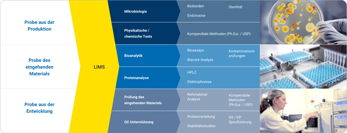 Mit mehr als 50 Jahren Erfahrung in der Entwicklung von analytischen Methoden sichern wir die Qualität, Identität, Reinheit und Wirksamkeit Ihres Produktes nach allen cGMP-Richtlinien. Die Grundlage hierfür bildet ein großes Methodenspektrum, welches eine produkt-spezifische, analytische Kontrollstrategie ermöglicht.